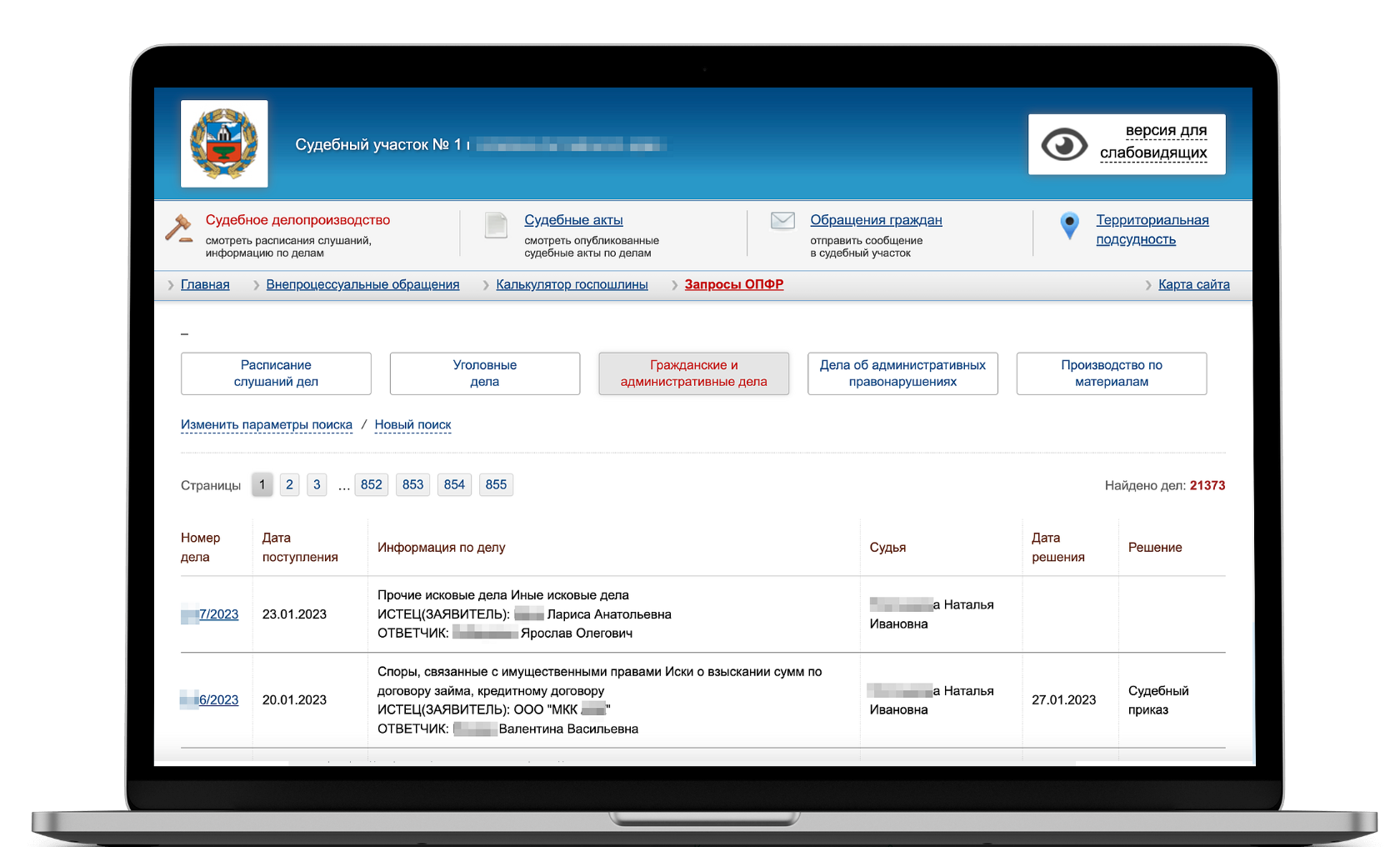 На текущий момент парсинг доступен по 6 000 судебных участков - 85% зона покрытия, в ближайшее время планируем её увеличить.